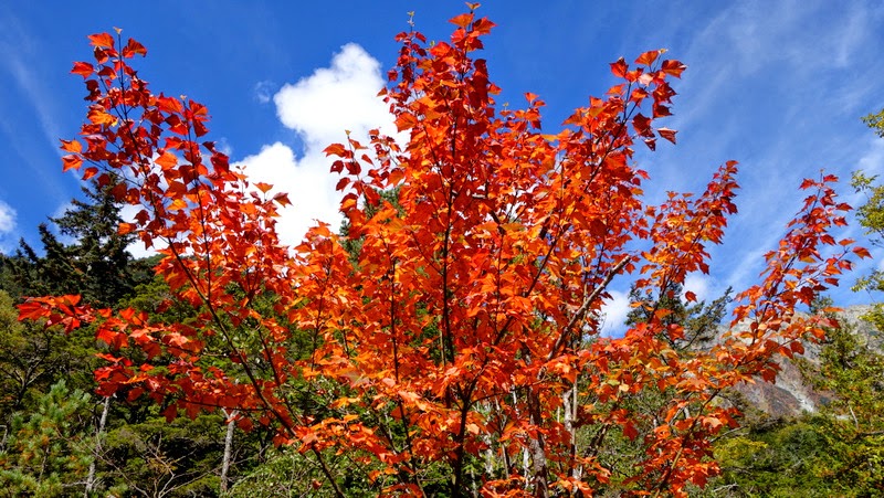 天氣真的很好,甚至有點熱,還不到紅葉的季節。偶爾在翠綠中發現一抹嫣紅就是驚喜。